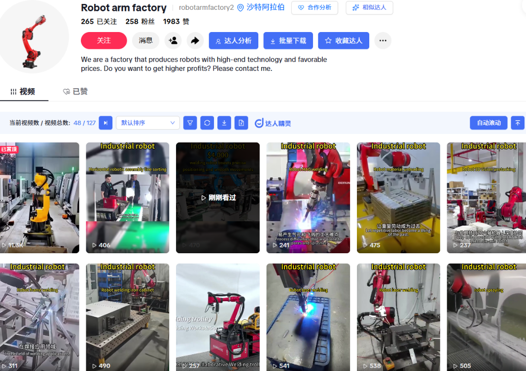 很多传统老板认为:“机械臂是大宗商品,客单价高,决策周期长,发抖音(TikTok)有用吗?”
