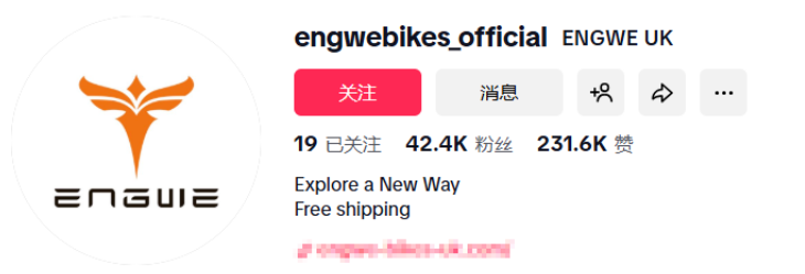 Engwe在TikTok上布局了官方账号@engwebikes_official,目前已积累4.24万粉丝,获赞23.16万。其内容策略清晰而务实: